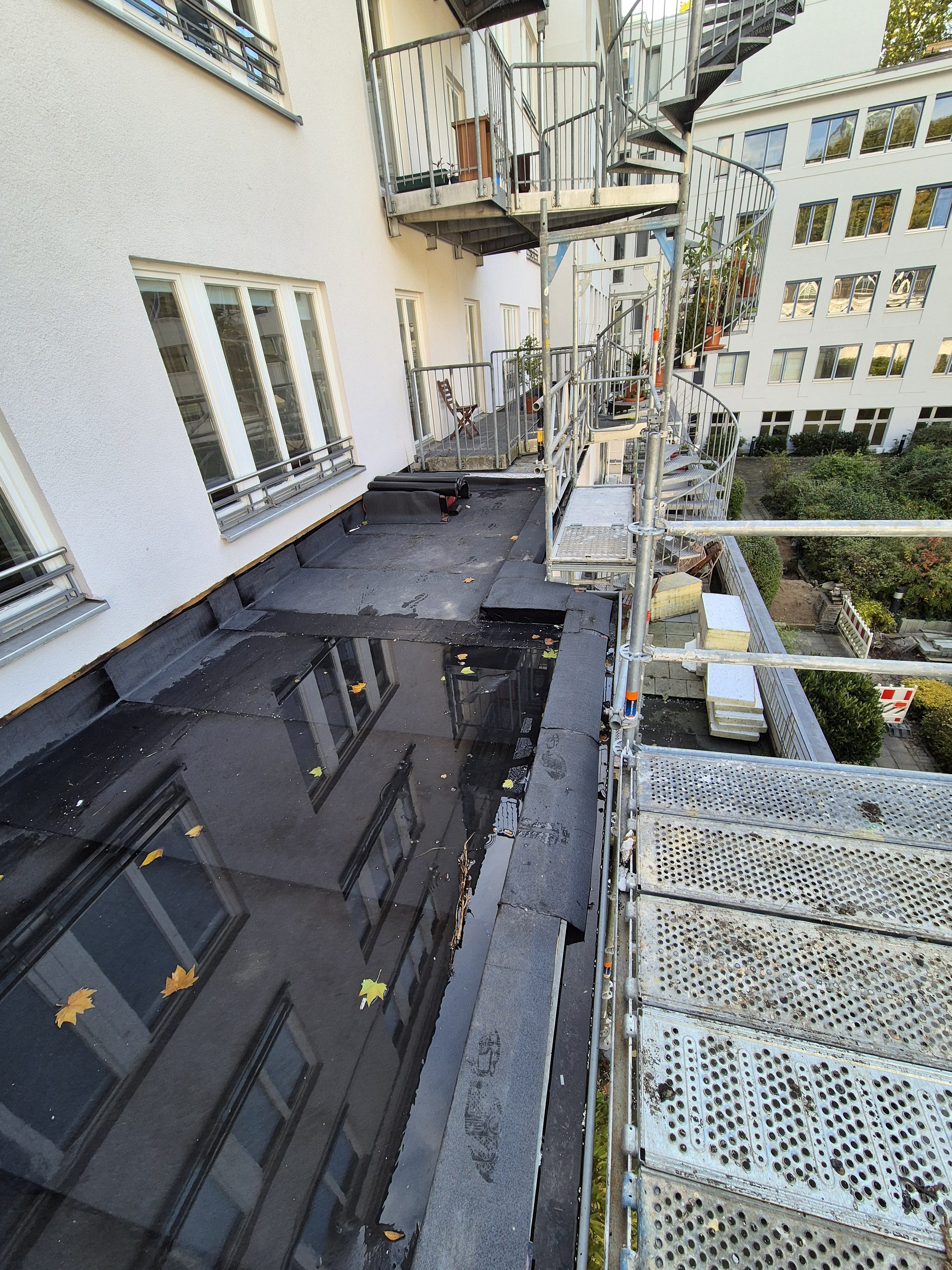 Gerade bei genutzten Flachdächern entstehen durch stehendes Wasser langfristig erhebliche Schäden an Konstruktion und Gebäudehülle.
