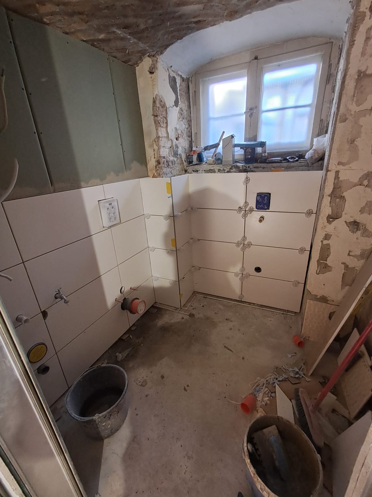 Nach einem massiven Wasserschaden wurde der komplette Dusch- und Badewannenbereich sorgfältig zurückgebaut. Neue Trockenbauwände und Abdichtungsarbeiten nach DIN sorgten für eine stabile und sichere Basis. Anschließend haben wir den Bereich mit hochwertigen Fliesen und modernen Armaturen ausgestattet. Das Ergebnis: ein elegantes, stilvolles Badezimmer mit klaren Linien und hohem Komfort, das wieder langfristige Freude bietet.